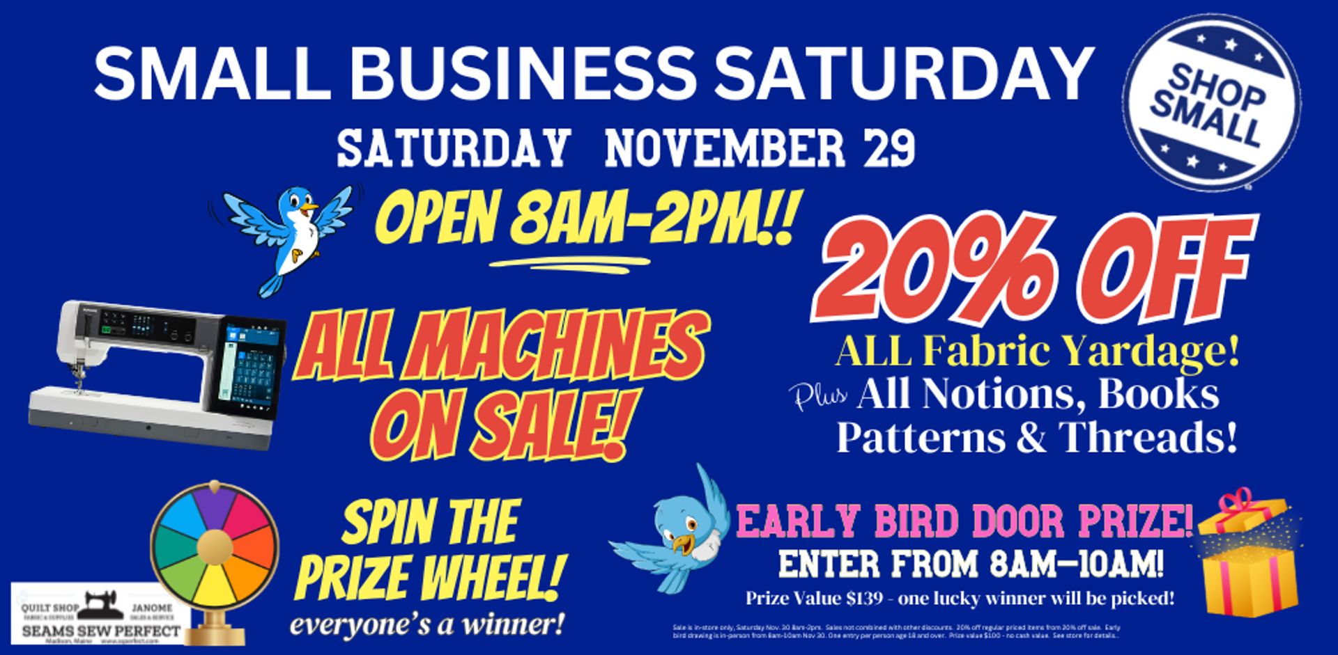 Hi, I'm Nina, owner of Seams Sew Perfect in Madison, Maine. Thank you so much for visiting us! We're so happy to help you create! If you're in the Central Maine area, we'd love to see you. We opened in February, 2022 in the same location as the former Fabric Garden in Madison, Maine, and the team is entirely made up of former Fabric Garden employees. Between us all, we have hundreds of years combined experience with Janome machines, and tons of quilting and sewing knowledge that we love to share. If you're looking for fabric, there are over 2,000 bolts and climbing, plus quilting & sewing supplies, and a full line of Janome machines. If your Janome or Elna machine needs service, just bring it in - we're a certified Janome Service Center. Classes are offered throughout the month in a fun, nurturing envioronment, and students receive in-store discounts. And of course if you can't make it in, shop right here at our online shop! New fabrics are added weekly. We love what we do, and look forward to helping you on your creative journey.