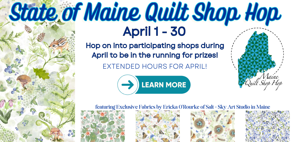 "Maine's Small Wonders" is the the Maine Quilt Shop Hop 2026 fabric, exclusive to participating shops, designed by -