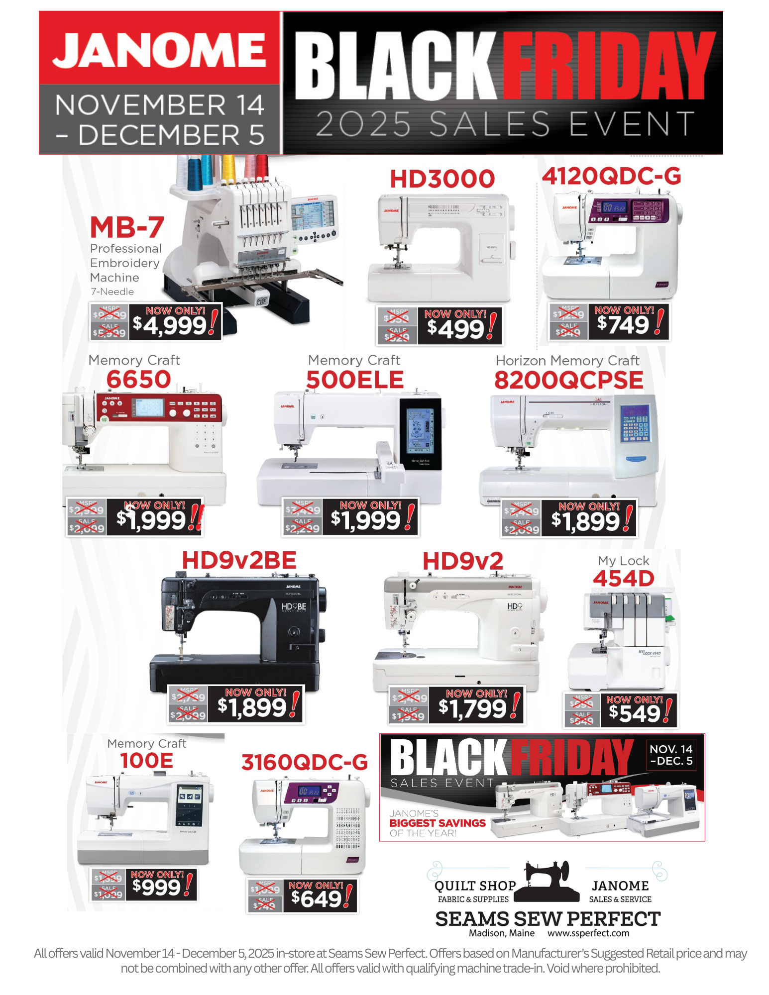 Holiday Machine Sale at Seams Sew Perfect going on now!